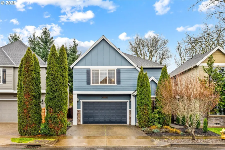 OPEN SUNDAY 12-2! This home has it all in a sought after Durham neighborhood. Brand new carpet installed January 2026. Lenox 97% efficient furnace & central A/C installed February 2025 w/ transferable warranty. Open Great-room w/ gas fireplace & ceiling fan. Kitchen w/ oak hardwood floors, granite countertops, eat-at bar, gas range, stainless appliances & a pantry. Dining area with sliding doors leading to the backyard patio. Office on main level. Primary suite w/ French doors, attached bathroom features a shower, soaking tub, double sinks, tile floor & a walk-in closet. Upper-level utility room w/ sink & built-in cabinets. Fenced yard with extended custom patio & water feature. Washer, dryer and refrigerator are included. Excellent location minutes to I-5, Bridgeport Village, Cook Park, coffee shops & restaurants.