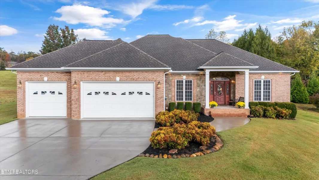 Comfortable living in the heart of Townsend's coveted Musket Ridge neighborhood. This impeccably-built brick ranch offers 3 beds and 2 baths across 1963 sq ft of a thoughtful one-level design - with an additional 465 sq ft of finished basement space for flexibility. Rich hardwood floors and a warm woodburning fireplace set the tone. The kitchen has an eat-in area, ample cabinet space, and a layout open to the great room and entry to the covered porch. The master suite provides direct covered porch access as well and a luxury bath with beautiful wood cabinetry, a jetted tub and double sinks. Two additional bedrooms are ideally situated for guests or home office. Outside, the half-acre lot gives you space without burdensome upkeep; the extra-deep three-car garage adds storage and flexibility for vehicles or toys. With sidewalks, streetlights, and easy access to Highway 321, you're minutes from the Smokies, but live with all the conveniences of community living. Don't miss this luxury ranch. The combination of the location, one level living, a covered outdoor space, mountain outlook + the oversized 3 car garage ... this is a rare find at this level in the area. Book your showing today!
