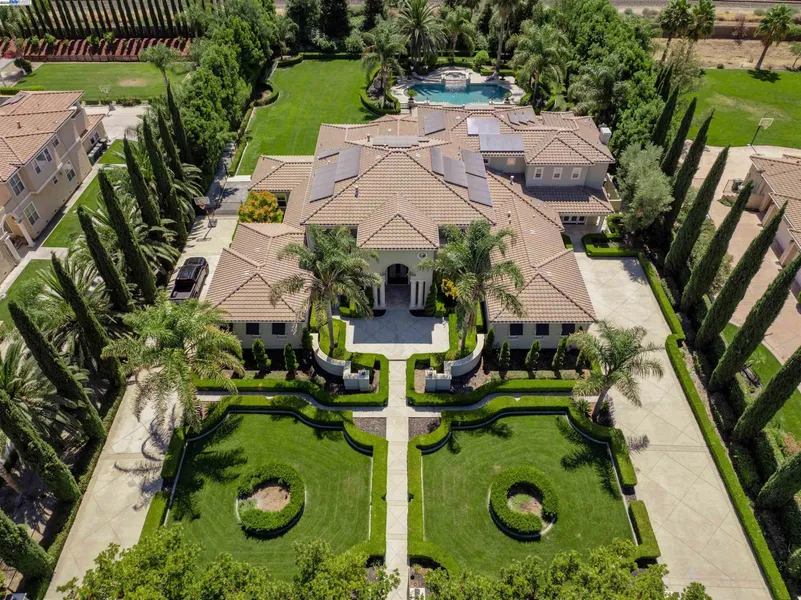 Welcome to Fair Oaks Estates where elegance, comfort, and luxury meet. This custom-built home is nothing short of breathtaking. From the grand entryway with dual staircases to the convenience of a private elevator, every detail has been designed to impress. Enjoy panoramic views of the backyard oasis from the open-concept kitchen, family room, main suite, and the suite's private balcony, creating a true sense of paradise right at home. With 6 spacious bedrooms (plus the option for a 7th), this residence offers incredible flexibility. Many bedrooms feature en-suite baths and walk-in closets, while upstairs guest suites boast private balconies. Additional features include a custom audio system and advanced home monitoring for peace of mind. Step outside and experience resort-style living in your professionally landscaped yard. Entertain with ease at the covered outdoor kitchen-complete with BBQ, ice maker, fridge, and sink or unwind in the covered lounge area with an outdoor fireplace. The sparkling pool and spa complete this incredible backyard retreat. For car enthusiasts or families with multiple vehicles, the property also offers two separate 3-car garages. This home truly embodies luxury living in Tracy. Don't miss your chance to own a residence that feels like paradise.