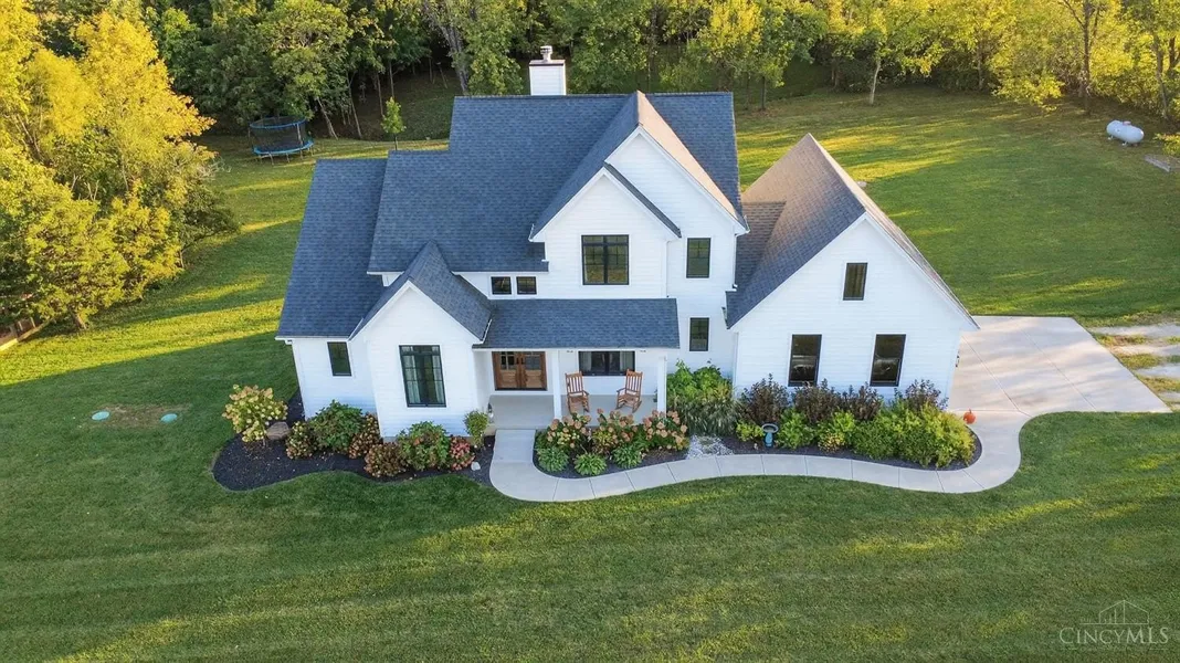 Stunning Modern Farmhouse on Nearly 9 Private Acres! Tucked away down a long, private driveway, this 3-bedroom, 2.5-bath home built in 2019 offers the perfect blend of upscale living and peaceful seclusion. Step inside through grand double front doors into a sun-filled great room with soaring cathedral ceilings, dramatic floor-to-ceiling stone fireplace, and striking black-framed windows that bring the outdoors in. The open-concept layout features a gourmet kitchen with a large island, granite countertops, and plenty of space for cooking, gathering, and entertaining. A first-floor laundry room adds everyday convenience. Retreat to the first-floor primary suite, which overlooks the private backyard and sparkling above-ground pool. The luxurious en-suite bath includes subway tile, a spacious tile shower, clawfoot soaking tub, double vanity, and a huge walk-in closet. With 9-foot ceilings t...