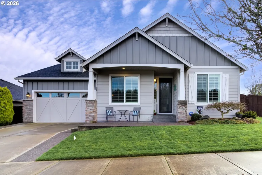 BETTER THAN NEW ONE LEVEL HOME. 3 bedrooms, 2 bathrooms, 1923 sqft, built in 2017 on a 7,745 sqft lot. Certified energy efficient home built by New Tradition Home that has lots of light and includes engineered hardwood floors in the living areas & plantation shutters throughout. Office w/ closet at the entry. Upgraded kitchen w/ huge quartz island, corner pantry & 5 burner gas range w/ stainless steel hood that opens to dining area & the great room w/ gas fireplace. Primary bedroom has walk-in closet and bathroom w/ shower & lots of storage. 3rd bedroom is large and next to the hall bathroom. Utility room off the garage w/ sink & matching cabintry. Hi-efficiency forced air heat system w/ AC. Tankless gas water heater. Covered back patio w/ extended area receives daytime sun/evening shade and overlooks the private fenced yard (no neighbors backing directly to the home). Superb neighborhood near both freeways & the conveniences of Salmon Creek.