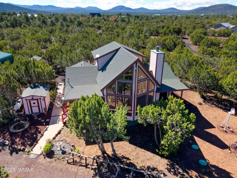 Open and spacious mountain style home with a loft on 2.38 fenced acres. Split floor plan, real wood floors, separate laundry/mud room woodstove and central air conditioning! Cozy in winter, comfortable in the summer. Heated 1380 square foot detached garage, huge RV shelter with power, water, and dump, she shed, he shed, garbage storage shed, woodshed, and a carport with a rodent deterrent light system. Deck off of the master bedroom, covered front porch, nice area off of the back. Garden spot and a chicken coop. There is water and power to everything. The back tool shed would make a good tack and feed room, plenty of room for a horse once you clear some trees. County maintained road.