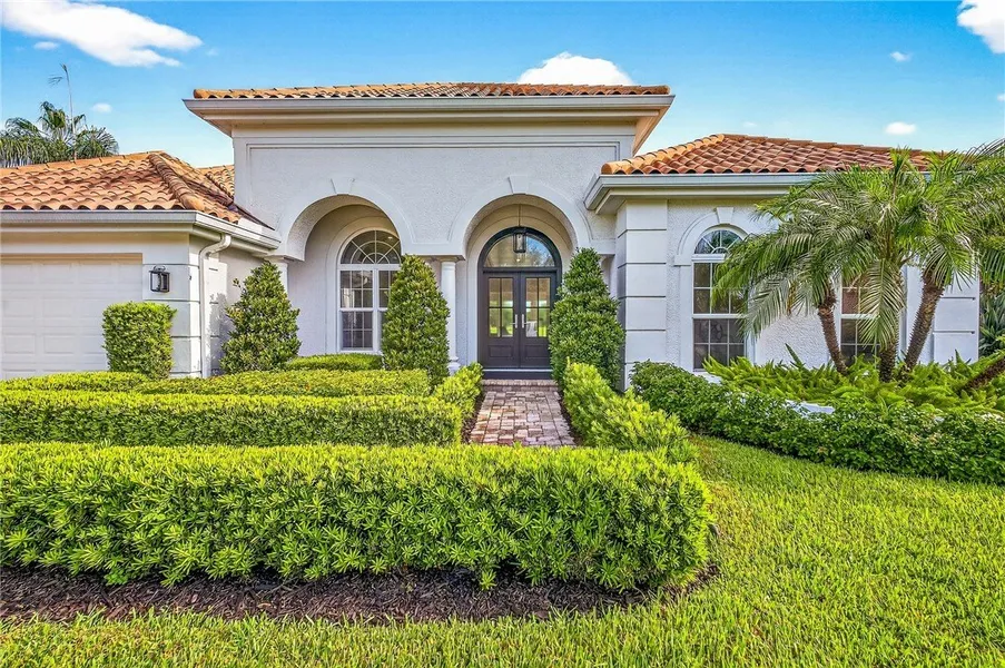 EXCEPTIONAL 2023 CUSTOM TRANSFORMATION OF THIS LAKEFRONT HOME IN GRAND HARBOR'S RIVER CLUB. Natural views of lake & golf course offers space & privacy. Quality finishes, cabinetry, SubZero & Wolf appliances, all impact doors/windows, custom closets, generator. Split plan offers 3 ensuite bedrooms. Primary bedroom offers large custom closet, an impressive bath & an adjoining leisure, den or exercise space. Oversize 2 car garage, AC storage room in 3rd garage bay. Enjoy the Grand Harbor lifestyle w club membership in a virtually new home. Whole house generator. Effective Year Built: 2023.