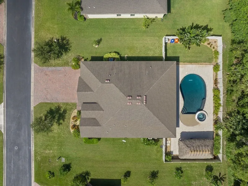 Experience relaxed Florida living in this thoughtfully designed private retreat! Nestled in a quiet community, this 2018 CBS home is move-in ready and impeccably maintained. The bright, open split floor plan showcases soaring ceilings, neutral wood-look tile floors, and a spacious modern kitchen with dual islands and abundant storage. The primary suite features a walk-in closet and spa-like bath with dual sinks and a large walk-in shower. Outdoors, enjoy a sparkling heated saltwater pool, expansive deck space, and an authentic Seminole Chickee/Tiki hut-perfect for entertaining or unwinding.