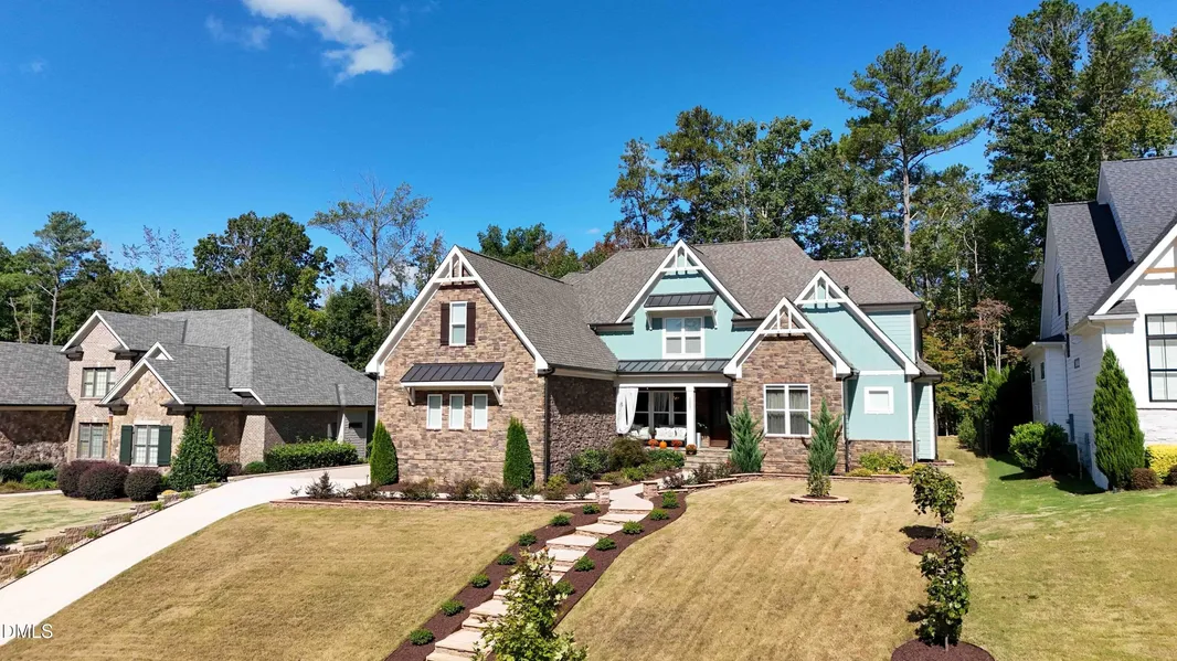 Welcome to this exceptional Gaylord design-build home in Lakestone-luxury, sophistication, and performance meet inspired living. Built in 2021, this 4-bedroom, 4.5-bathroom residence combines high-end finishes, refined appointments, and a thoughtfully crafted layout for today's lifestyle. Features a first-floor master + guest suite, a gourmet quartz kitchen with Bertazzoni chef's stove, double bake oven & a 50 bottle temp controlled wine chiller Liebherr fridge, and elegant coffered ceilings with a cozy fireplace. Upstairs, enjoy a media room with a full bar, beverage fridge, and surround sound-perfect for entertaining. Outdoor living shines with a screened patio, fireplace, and reservoir views across a spacious lot. 3 car garage, butlers pantry, sliding glass doors, encapsulated crawl space, gutter guards, exterior lighting with custom landscape, additional unfinished space upstairs, too much to mention! And move in ready. Historic Downtown Wake Forest, Joyner Park, Falls Lake Recreation, Heritage Golf Club, hiking and bike trail along reservoir, boutique shopping, dining, and more nearby. This home is move-in ready with designer details throughout-perfect for those who value luxury and lifestyle.