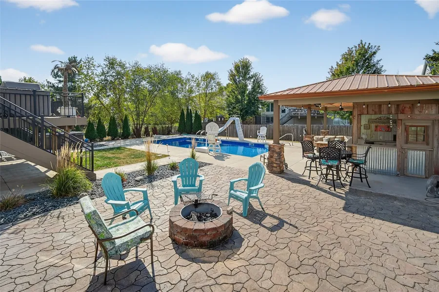 Dreaming of a backyard Oasis? Imagine a tranquil retreat right outside your door. Welcome to this well-loved, one-owner home in an established Waukee neighborhood, just minutes away from Jordan Creek Mall, Topgolf, Des Moines Golf & Country Club, restaurants and walking trails. With over 4,000 sq ft. of living space, this home offers 5 bedrooms and 4.5 baths. The main level features hardwood floors, a large family room with brand-new carpet and a cozy gas fireplace, plus an office/flex room. The kitchen is built for entertaining with 7- foot island, custom cabinets, gas stove and wall ovens. Upstairs, you'll find 4 spacious bedrooms with brand new carpet. The primary suite boasts vaulted ceilings, large walk-in closet, and a spa-like bath with dual shower heads. 2 bedrooms share a Jack-and-Jill bath, while the 4th bed has its own en-suite bath. The lower level is filled with natural lights from daylight windows and include a wet bar, family room, game room, the 5th bedroom, and a full bath. Outside is where this Home truly shines! a heated saltwater pool, open deck, fire pit, and a TIKI bar with glowing string lights. Cushioned bar stools invite you to relax, sip a drink, watch TV, and enjoy your own backyard paradise. All information obtained from Seller and public records.