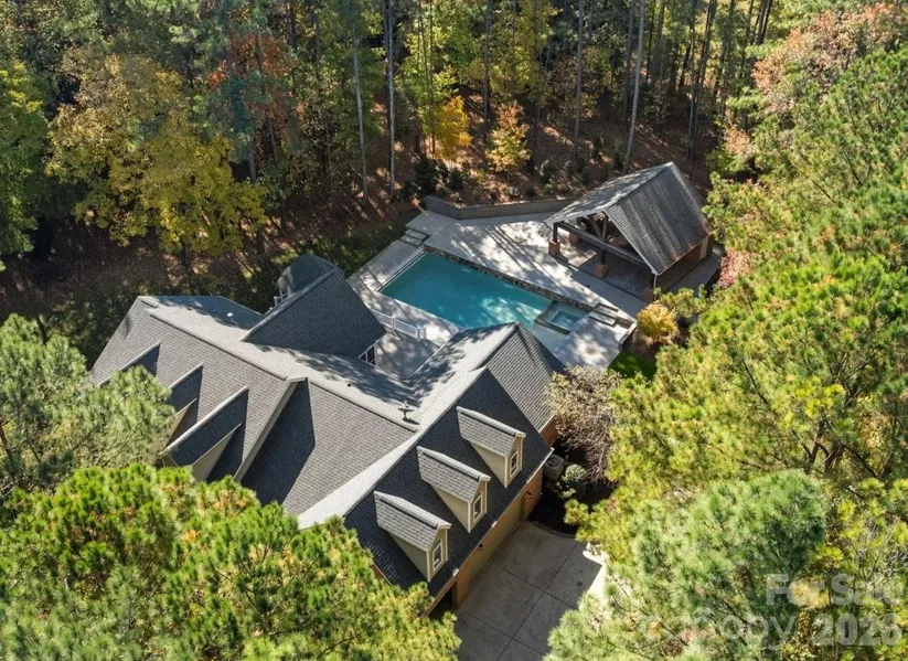 Estate Living at Its Finest in Valhalla Farms. Set on 2.38 private acres, this stunning 4-bedroom estate has been transformed with $600K+ in luxury additions & upgrades. Resort-style living awaits with a heated saltwater pool, attached spa, sheer waterfalls, tanning ledge, electric cover-and a show-stopping pool house featuring a half bath, storage, fireplace, full outdoor kitchen, and bar. Inside, enjoy quartz kitchen upgrades, new baths, custom closets, fresh paint, new LVP flooring, designer window treatments, and so much more. Outdoor highlights include Tec decking, landscape lighting, irrigation, and lush landscaping. Nestled in a beautiful wooded community with a pond & walking trails, plus optional pool & tennis membership. Much of the interior repainted in 2025. Beautiful wooded community with pond and walking path. Community pool and tennis membership available. The main house has three full bathrooms and two half bathrooms, but there is also a half bathroom in the poolhouse for a total of three half baths. "Additional square footage" is half bath and storage room in detached pool house.