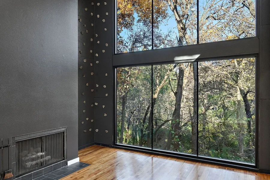This Browns Woods home is the showstopper you've been waiting for. Nestled on a private wooded lot, this property blends modern design with natural beauty the perfect retreat for anyone searching for a home with privacy, unique features, and updates. The impressive great room features floor-to-ceiling windows, flooding the space with natural light and offering views of the mature trees that make Browns Woods famous. A dramatic fireplace anchors the room, and a custom climbing wall adds a fun, unexpected architecture. The kitchen is an entertainer's dream, complete with custom cabinetry, a massive island, a cozy sitting area with fireplace, and a wet bar. Off the main level, a brand-new expansive deck runs along the back of the home, creating the perfect outdoor space for grilling, relaxing, or enjoying peaceful wooded views. Upstairs the loft offers a flexible second living area. The primary suite features 2 separate shower areas (one with a tub/shower combo, one with a tiled walk-in shower), each with its own vanity. Step outside to your private 2nd-floor deck. The newly completed Tree Walk connects directly from the deck to the treehouse. 2 additional bedrooms and another full bath complete the upper level. The walkout lower level features a large rec room with wet bar, bedroom, and full bath. Between the wooded lot, the treehouse connection, and the incredible flex spaces, this property is unlike anything else on the market. This is the one you don't want to miss.