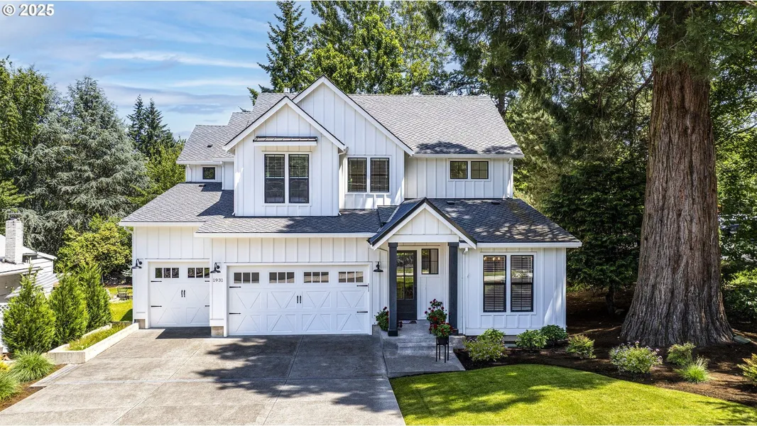 Open House Saturday 1-3PM. Welcome to this beautiful home located within one of West Linn's most coveted neighborhoods, this nearly brand new modern farmhouse, crafted by the illustrious Gerritz Custom Homes, radiates timeless elegance and sophistication. As you approach the property, the welcoming driveway heralds the grandeur that awaits within. Stepping through the front door, you are immediately enveloped by the opulent ambiance that defines every inch of this bespoke residence. The sprawling living room, paired with the gourmet chef's kitchen, provides the perfect canvas for hosting unforgettable gatherings. The kitchen, a culinary dream, boasts an expansive quartz island, a spacious walk-in pantry, a sleek built-in wine fridge, and state-of-the-art Dacor appliances. The ambiance is further enhanced by the twin floor-to-ceiling stone fireplaces and the cedar-covered back patio, creating an atmosphere of elegance. In the heart of the home, a tranquil water feature flows seamlessly in the backyard, creating a serene oasis that invites you to unwind and relax. The main level also features a versatile office/den space and a guest suite with an attached full bath, graced with a floor-to-ceiling tile shower. Ascend to the second floor, and you'll discover a generously proportioned primary suite that evokes the essence of a luxury spa retreat, complemented by two additional bedrooms and a laundry room. This stunning abode is ideally located within walking distance to charming shops, summer street market, restaurants, the esteemed Willamette Primary School, Willamette Park and the Willamette River with boat launch. West Linn, a community known for its top-tier schools and warm, safe atmosphere, is the perfect backdrop for this exquisite home. Take a virtual journey through the video tour and immerse yourself in the beauty of this exceptional residence. We invite you to come and experience the splendor of this captivating home in person.