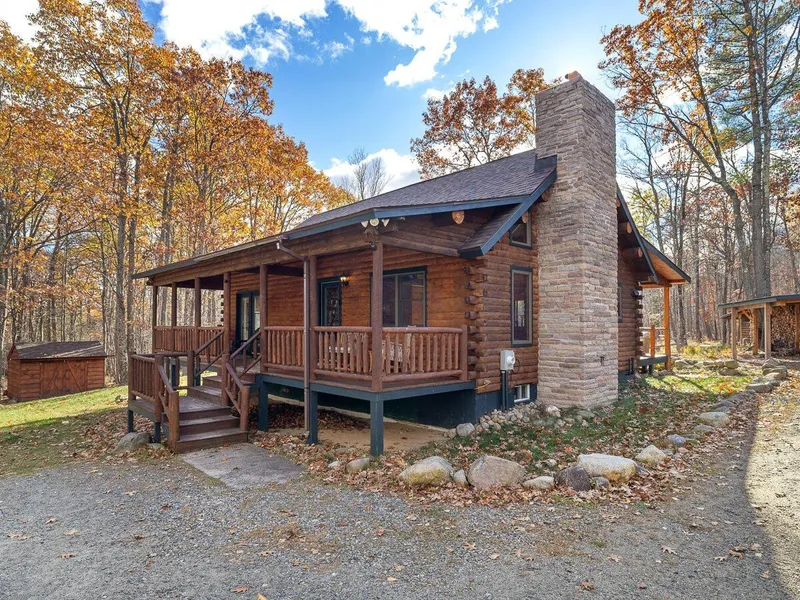 Nestled in a quiet Wilmington neighborhood, this classic Adirondack log cabin blends rustic charm with modern comfort. Spanning 2,200 square feet, the home features 3 bedrooms and 2 bathrooms across three floors, including a luxurious main level bath that offers a spa-like retreat after a day spent skiing or hiking. Large windows fill the open living spaces with natural light, highlighting the rich wood finishes, exposed beams, and cathedral ceilings that create a warm, inviting atmosphere. Enjoy the outdoors year-round with two spacious covered porches. The property also includes a garden shed and a heated workshop, ideal for storing bikes and skis. Set on 5 peaceful acres, this home offers privacy while being just minutes from the heart of Wilmington and Whiteface Ski Resort. Currently a successful vacation rental, the home is being sold completely turnkey-ready for your immediate enjo...