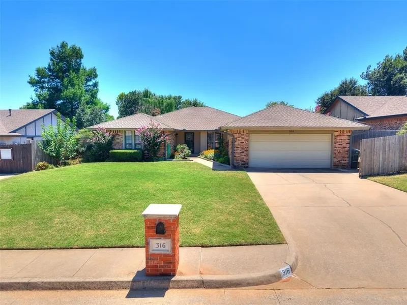 Squeaky clean & ready for you! This meticulously maintained home offers very spacious rooms throughout. Vaulted ceiling in the living room w/gas fireplace. 2 Dining areas for hosting family & friends. The kitchen has Corian counter tops & newer appliances, great counter space & a pantry. The primary bedroom has a private bath w/double vanity, & a full tile shower. Both secondary bedrooms has walk-in closets. There's also an enclosed sunroom just off the formal dining area to enjoy the yard, even in colder weather. The oversized garage has a storm shelter & the park like yard is peaceful, w/covered patio.