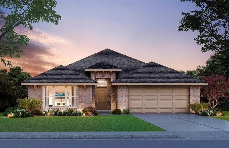 Fall in love with the beautifully designed Tiffany floor plan, a thoughtfully crafted three bedroom, two bath home offering 1,875 square feet of open concept living on a desirable corner lot. This prime homesite provides added privacy, extra yard space, and enhanced curb appeal. Currently under construction and available to reserve prior to completion. Call today for details on the current stage of the home. A striking barreled ceiling entryway creates a grand first impression and leads into a spacious living area anchored by a cozy fireplace, perfect for both everyday living and entertaining. The kitchen is a true gathering space, featuring soft close cabinetry, quartz countertops, under cabinet lighting, a large center island, and stainless steel Samsung appliances, including a five burner gas range. One of the standout features of the Tiffany floor plan is the unique and highly functional connection from the utility room to the primary closet and ensuite, making daily routines seamless and efficient. The private primary suite is a true retreat, offering a tray ceiling, a spacious walk-in closet, dual vanities, a soaking garden tub, a doorless walk-in tiled shower, and a private water closet. Enjoy outdoor living on the covered back patio, ideal for relaxing or hosting year round. Located in the sought after Sycamores Gardens community, this home offers easy access to I 40, providing quick commutes to Will Rogers Airport, Oklahoma City Community College, Hobby Lobby Headquarters, Tinker AFB, and the surrounding metro. Situated within the Mustang School District, the neighborhood also features two community parks with playgrounds, picnic and basketball areas, and a splash pad. Don't miss your opportunity to reserve this stunning corner lot Tiffany. Schedule your appointment today.