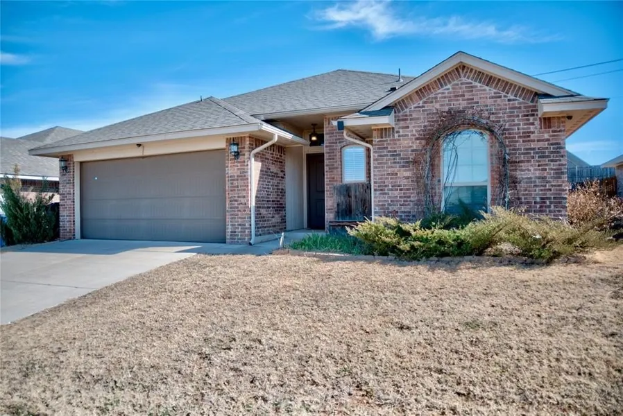 Squeaky clean and ready to move in. Just like new but with storm cellar and Generac generator in case of power outages. Recent class 4 hail resistant roof in 2024. Wood -like ceramic tile in traffic areas. Great master shower with glass door and grab bars and huge walk-in closet. Ceiling fans in master and living room. Open living with breakfast bar and 2 level counters. Pantry for storage and lots of counter space. Solid surface counters. Utility room with a window! Extra storage closets in garage. Covered patio in back. Lots of extra landscaping. Yukon schools and close to elementary.