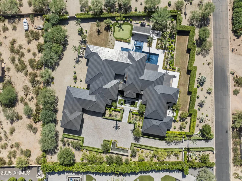 Nestled on one of the most coveted streets in Arizona's wealthiest zip codes, this custom private estate sits on two, well-landscaped acres with Camelback Mountain views. Custom designed and constructed for indoor-outdoor living and timeless quality. A well thought out split floorpan offers 4 Ensuites + Bonus Room on one wing & and a secluded primary retreat on the other wing with separate Bathrooms, and closets, and Mountain Views from Bed. Seamless indoor-outdoor living at the center of the estate, with bar, theater, game room & glass walls opening to resort style patios and drop down projector screens that transform spaces for entertainment and relaxation. Homes of this caliber, on lots this size, rarely become available - an exceptional opportunity to own in Paradise!