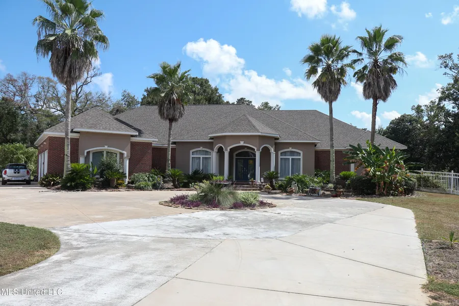 Discover refined living in this custom-built estate, perfectly situated on 1.93 acres in a peaceful cul-de-sac within the highly sought-after Longfellow Acres Subdivision. With an impressive 6,704 sq. ft. of living space, this home was thoughtfully designed for both elegance and comfort. The open floor plan highlights a Chef's Gourmet Kitchen complete with stainless steel appliances, a walk-in pantry, custom cabinets, eat-in bar as well as a breakfast area and abundant counter space-ideal of entertaining and everyday living. The sitting room features a wood-burning fireplace adding warmth and charm. The luxurious master suite opens with French doors into the patio pool area for a spa-like retreat. with a walk-in shower, jetted tub, his-and-her closets and separate vanity areas. With 5 spacious bedrooms, 3 full bathrooms and 2 half baths, plus a versatile bonus room currently used as a playroom, there's room for everyone! Additional features include a 3-car garage with stairs walking up into the floored attic, a large laundry room and a pool/guest house with a bath and kitchenette perfect for visitors or extended family. The outdoor living space is a true oasis, boasting a saltwater pool with fountain, expansive covered patio, outdoor shower, firepit, garden area and even a custom playhouse with a zip line. Just a short walk to the beach, this property blends luxury, comfort, and coastal charm in one incredible package.