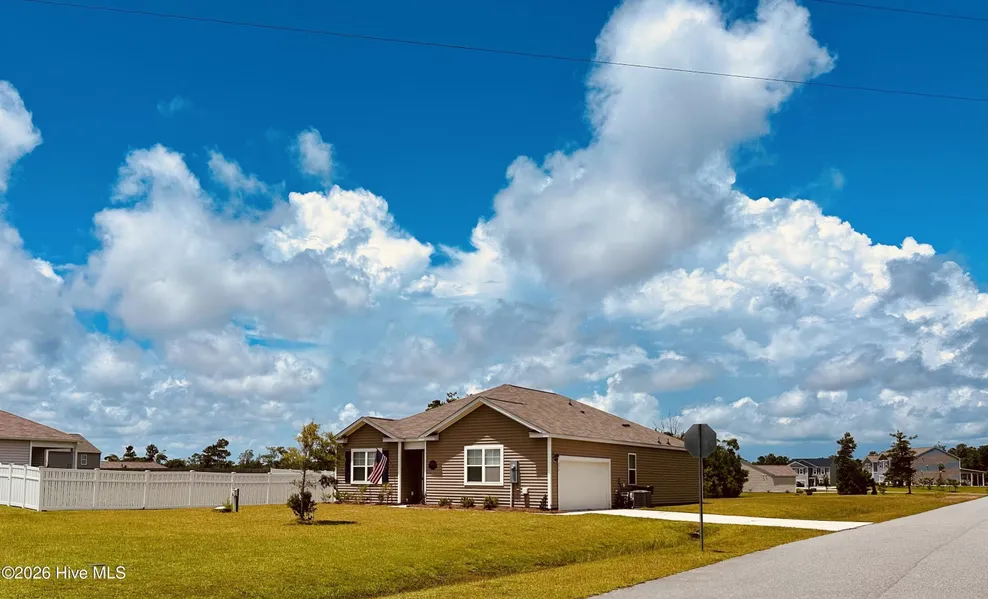 Welcome to River East community! This beautifully maintained single-story home showcases the popular Cali floor plan, offering 4 bedrooms and 2 bathrooms in a thoughtfully designed layout. An open-concept living area seamlessly connects to the modern kitchen, featuring stainless steel appliances-including a smooth-top electric range, microwave, dishwasher, granite countertops, refrigerator-and a spacious kitchen island perfect for meal prep and casual dining. At the front of the home, you'll find three bedrooms and a shared full bathroom, 9 foot ceilings throughout. The private Primary Suite, tucked away off the living area, boasts an ensuite bath with dual vanities, a walk in shower, and a generous walk in closet. Designed for both style and functionality, this home includes quality finishes throughout, making it an ideal choice for those seeking a modern ranch-style residence. The inviting living room provides the perfect gathering space for family and friends, while large windows bring in abundant natural light. Step outside to enjoy the screened in patio and a very spacious backyard, perfect for outdoor activities and entertaining. Located just minutes from the pristine beaches of Emerald Isle, this home offers a rare combination of comfort, convenience, and coastal charm. Its central location provides easy access to Cherry Point, Camp Lejeune, Fort Macon, and the Coast Guard Station.