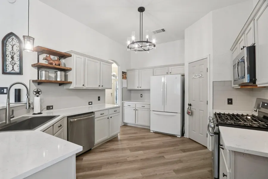 Welcome to this beautifully maintained single-story home in the desirable Bohls Place community of Pflugerville! This thoughtfully designed 4-bedroom, 2-bathroom residence offers both comfort and sophistication with an open layout ideal for everyday living and entertaining. Inside, the spacious family room flows seamlessly into the dining area and kitchen, creating a bright, welcoming atmosphere. The kitchen features generous counter space, a cozy breakfast area, and an open view into the living room-perfect for connecting with family or guests. Smart home upgrades make daily life effortless: the primary spa like bathroom features Alexa-controlled lighting and music, while the secondary bathroom offers WiFi-enabled lighting and built-in speakers for a modern, luxurious touch. Step outside to your private backyard oasis-complete with a large deck, pergola, and sparkling swimming pool-all ...