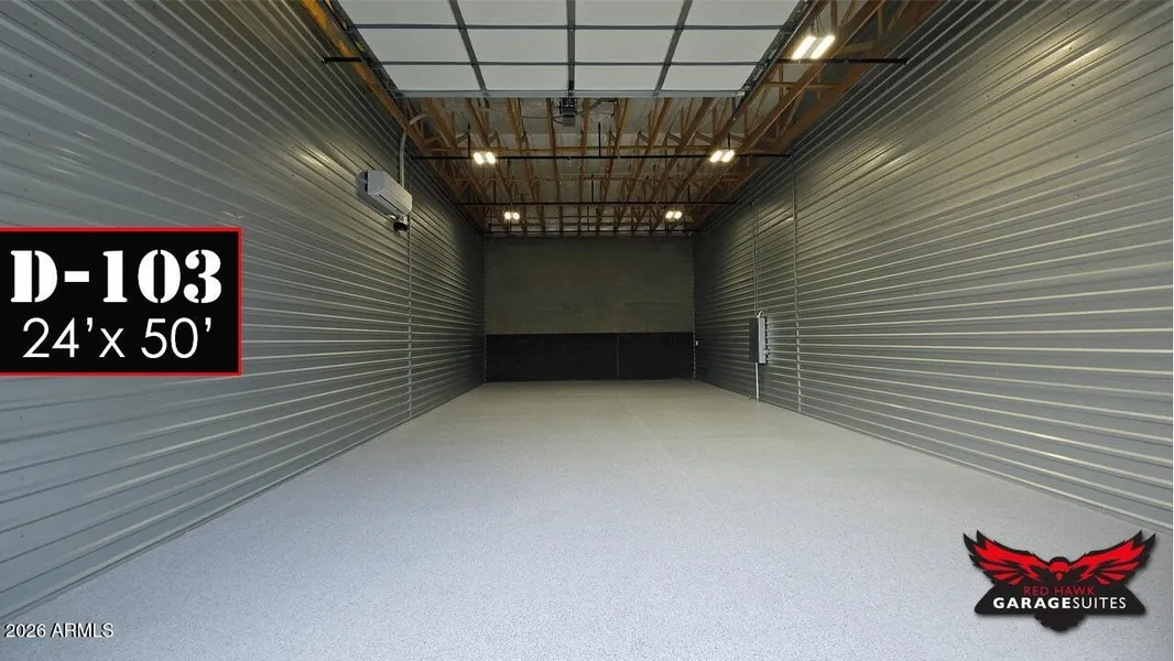 Secure, Private, Climate-Controlled, Luxury Garage Suite in a prime location. Block and Steel built, Heat-Insulated, 3-Ton A/C, with 14x14 power doors, LED lighting, High-Performance Epoxy floors, Steel Man-door, 120V power panel, and pre-stubbed for bathroom. Enjoy an Unlimited array of additional customization options. Community amenities include; 24/7 Gated access, Member's Only Clubhouse, Cigar Lounge, RV Wash, RV Dump, Roof Deck, Outdoor patios, 50 foot wide drive aisles, and round the clock video surveillance. Ownership at Red Hawk means joining an elite group of adventure minded people, your fellow luxury garage owners. That's the best amenity of all. Dreams Cars deserve Dream Homes.
