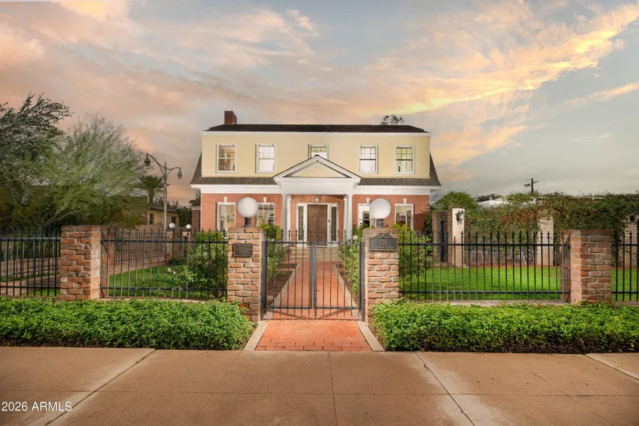 This Landmark Estate formally named the ''Harry J. Felch House'' is a rare example of Dutch Colonial architecture in Phoenix. It retains an unheard of number of meticulously maintained original features from the front door with sidelights entering the formal foyer with custom faux finished etched plaster and ''dutch windmill'' light pendant that continue as you find yourself transported to a bygone era of grace and beauty. The main house features 5 bedrooms, three baths, formal,dining and breakfast rooms,office original kitchen/butler's pantry, modern kitchen and basement. The newly renovated carriage house hosts a two car garage and full guest house. The exquisite grounds feature a large pool,extensive gardens, mature trees,outdoor fireplace,pergolas and outdoor kitchen. Truly, a must see home
