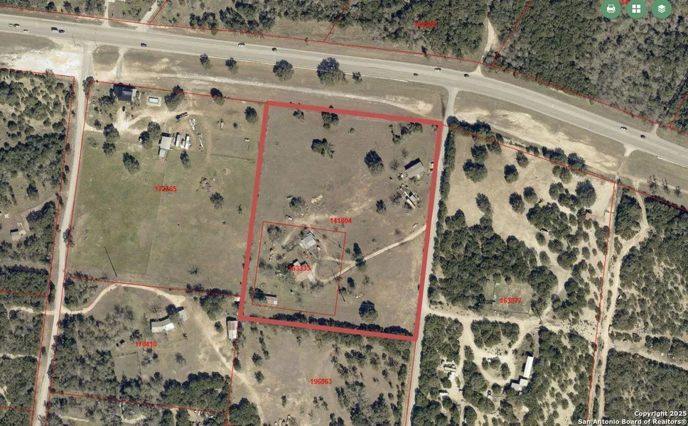 No HOA! Highway 16 Frontage with possible commercial potential. Rare opportunity to own 9.81 unrestricted acres featuring two homes, ideal for multi-generational living, rental income, horses and other livestock possibilities, or a private retreat. The main residence is a charming 3-bedroom, 2-bath stone home offering two spacious living areas, a large utility room, and is truly move-in ready. Enjoy outdoor living on the 16' x 25' covered back porch, perfect for relaxing or entertaining. Recent upgrade includes a new AC system installed in 2023. Double-pane windows throughout. Property also features a 3,000-gallon concrete cistern with well house. Two car garage with additional ample parking and a circle drive. The acreage is well-equipped with a large 20' x 52' barn and a 36' x 36' workshop/outbuilding, providing ample space for equipment, hobbies, or livestock. In addition, the propert...