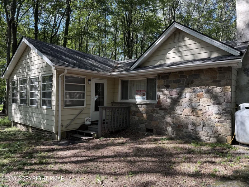 Looking for a getaway in the Poconos? Come and look at this cozy ranch on a wooded lot with a 1 car detached garage. Close to routes 940/380/80, near Kalahari Water Park, 20 minutes to Camelback Ski Resort, minutes away from Mt. Airy Casino and plenty more to keep you busy in the mountains! Put your finishing touches to this getaway. Open layout featuring Kitchen, dining combo, Livingroom, 3 bedrooms, large sunroom and enclosed front porch w/fireplace.