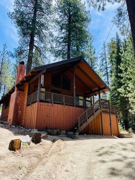 Cozy up to the warm fire and enjoy the snow to come. You will have the best winter ever in this move in ready Cabin Located in the beautiful Sierra Nevada mountains. The price also Includes the lot next door. For a total of just under 1 acre 33,412 sq foot for both lots. How's that for space and privacy ? The main level has 1 bedroom with lots of closet space and a bath right across the hallway. The upper area loft is set up with 2 beds for additional sleeping . The kitchen has a gas stove, microwave, fridge , pantry and great views from the window over the sink which over looks the wrap around deck. The kitchen opens to the living area with vaulted beamed ceilings , fireplace and a spiral staircase that leads to the cozy loft . This cabin is fully furnished . Bring you bags and move in. The front porch (My Favorite ) is covered so sitting outside is nice year round. The deck wraps aroun...
