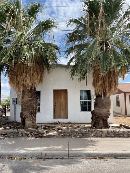 One of the oldest remaining adobe's and the original site for the Presidio Electric company this simple property sits on the main thoroughfare of Presidio close to the port of entry to Ojinaga - the mural by artist Jana Renee evokes the sunrises that blanket the area.