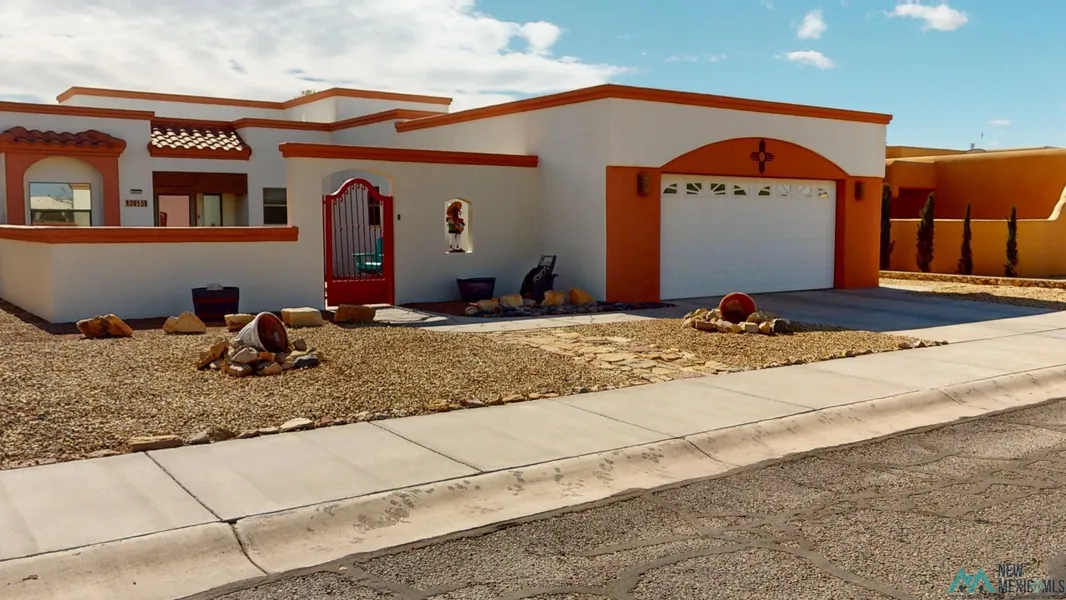 Welcome to this beautifully maintained Southwest-style home located in the desirable Country Club Estates 55+ community in Deming, NM. Built in 2006, this 2-bedroom, 2-bathroom home offers 1,784 square feet of comfortable living space with thoughtful features throughout, and an attached 2-car garage (approx. 552 sq. ft). Step inside to the open living room with refrigerated central cooling, gas central heating, and a cozy gas fireplace for those cooler evenings. The high ceilings and access to the backyard enhance the spacious feel of the main living area. The kitchen is a dream, offering abundant cabinetry and countertop space, flowing seamlessly into the breakfast nook and a separate formal dining area perfect for entertaining. Retreat to the huge master suite featuring carpet flooring, a large walk-in closet, privacy toilet, and a jetted tub to relax and unwind. The second bedroom features heated tile flooring, ideal for comfort year-round. The home also includes a spacious laundry room with a utility sink, side yard access, and a direct connection to the garage. Water softener (installed about a year ago per sellers) and a gas water heater (replaced in 2017 per sellers) add to the home's functionality. Enjoy outdoor living on the covered back patio, or take in spectacular views of the Florida Mountains from the roof decka perfect spot to start or end your day. Residents of Country Club Estates with an annual HOA fee of $200, which includes access to a well-appointed clubhouse with a full kitchen, available for community events or private gatherings. Utilities include city water, sewer, and trash, with New Mexico Gas Company providing natural gas. The roof was recoated with elastomeric in 2(022 per seller) for added peace of mind. Dont miss this opportunity to live in a quiet, friendly 55+ community with beautiful views and modern conveniences. The musician on the front deck DOES NOT CONVEY! Call your Realtor to schedule your private showing today! Encanto del Suroeste en la Comunidad Country Club Estates para Mayores de 55+ Bienvenido a esta hermosa casa de estilo suroeste ubicada en la codiciada comunidad Country Club Estates 55+ en Deming, NM. Construida en 2006, esta propiedad cuenta con 2 habitaciones, 1 Y 3/4 banos y 1,784 pies cuadrados de espacio habitable, ademas de un garaje adjunto para 2 autos (aprox. 552 pies cuadrados). La sala principal ofrece techos altos, refrigeracion central, calefaccion central a gas, y una chimenea de gas que brinda una fuente adicional de calor y un ambiente acogedor. Desde aqui puedes acceder al patio trasero para disfrutar del aire libre. La cocina es amplia y funcional, con mucho espacio en gabinetes y encimeras, ademas de un acogedor desayunador y un comedor formal separado, ideal para recibir a tus invitados. El dormitorio principal es muy amplio, con alfombra, vestidor tipo walk-in, inodoro privado y una tina de hidromasaje perfecta para relajarte. La segunda recamara deal para los meses mas frios. Tambien encontraras una amplia lavanderia con lavadero, salida al patio lateral y acceso directo al garaje. La casa incluye un suavizador de agua (instalado hace aproximadamente un ano) y un calentador de agua a gas (reemplazado en 2017). Disfruta del aire libre en el patio trasero cubierto o sube a la terraza en la azotea para admirar las hermosas vistas de las Montanas Florida. Los residentes de Country Club Estates disfrutan de una cuota HOA baja de solo $200 al ano, que incluye acceso a una casa club con cocina, perfecta para eventos comunitarios o reuniones privadas. La propiedad cuenta con servicios publicos de agua, drenaja y basura, y el gas natural es provisto por New Mexico Gas Company. No pierdas la oportunidad de vivir en una comunidad tranquila, amigable y disenada para adultos mayores de 55+, con hermosas vistas y de la montanas.