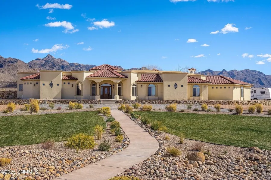 Step into luxury with this newly listed 4-bedroom, 5-bathroom custom-built house, embodying upscale living with a personal touch. Spanning 3372 square feet, this home offers expansive areas for grand entertaining. The heart of the home comes equipped with top-of-the-line appliances and sprawling counters, including a large island that's perfect for brunch or buffets. The open floor plan connects seamlessly with the living and dining spaces, punctuated by lofty ceilings that elevate the room's ambiance. The primary bedroom promises sanctuary-like comfort, accompanied by an ensuite that offers a spa-like experience. Every additional bedroom boasts ample space and individual bathrooms, providing convenience for all family members. Step outside to discover an unobstructed view of the Organ Mountains and a meticulously designed outdoor area with a sophisticated kitchen and spacious east-facing patio. Seller offering $7500 seller concession towards rate by down.