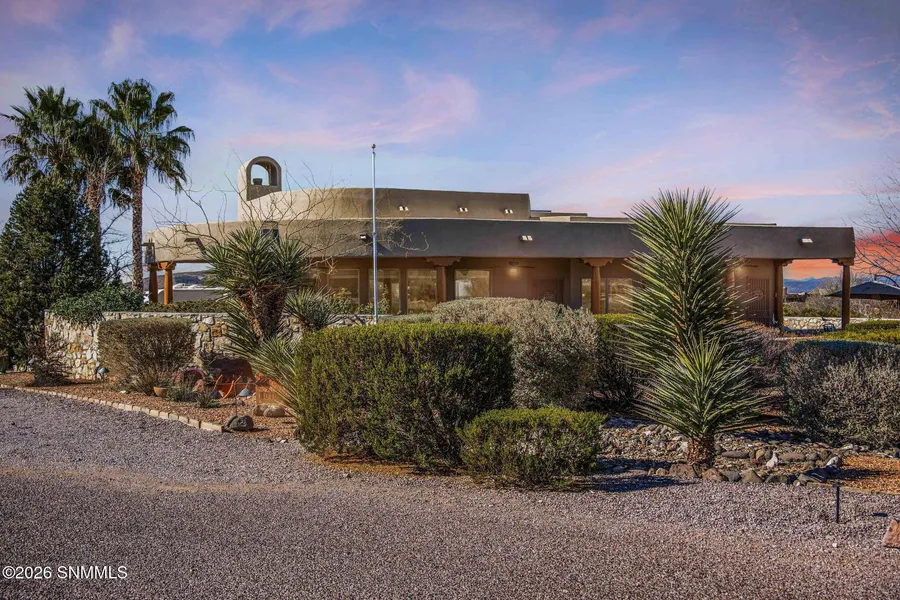 Enjoy elevated Southwest living on 1.01 acres in this 2,665 sq ft home, tucked away on a quiet paved cul-de-sac with stunning views of the Organ Mountains. Inside you'll find 3 bedrooms, an office and features like coved ceilings, sound-insulated walls, 8-foot solid wood doors, and quality finishes throughout. The primary suite offers patio access and a spa-like bath with jets and a separate rain shower. Designed for comfort and efficiency, the home includes dual HVAC systems, instant hot water, water softener, propane with natural gas available, and a built-in alarm system. Outdoor living shines with an expansive east-facing covered patio, outdoor fireplace, copper fountain, and a enclosed front courtyard. The finished 3+ car garage spans over 1,000 sq ft with skylights, insulated oversized doors, separate cooling. Also, RV Access with 30amp amp hookups (separately wired for 50-amp). Mo...