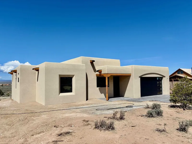NEW CONSTRUCTION. Featuring two bedrooms and two bathrooms nicely spread out over 1238 square feet. Will have granite, tile, and stainless steel appliances along with a fireplace. The entire house has in slab, radiant heating, including the garage. Has amazing views of Taos Mountain, and superb sunset views. Will have a, Navien, tankless water heater. Has a state of the art TPO roof. The garage is considerably oversized.