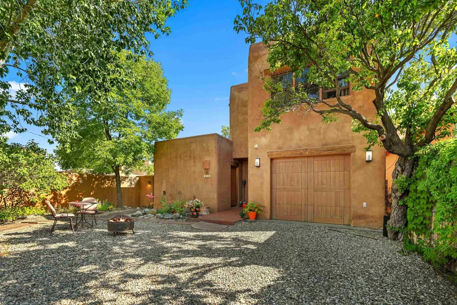 Picturesque In-Town Retreat, 3 Bedrooms | 3 Baths, 2,206 Sq Ft, 1-Car Garage, Walk to Taos Plaza Tucked behind a private walled garden just steps from historic La Loma Plaza, this distinctive pueblo-style home captures the soul of Taos-where old-world charm meets modern comfort. Nestled on a corner lot shaded by mature trees, this in-town sanctuary offers both serenity and convenience, only a short stroll from Taos Plaza, Bent Street's galleries, local shops, and some of the area's best dining. From the moment you enter, you'll feel the warmth and personality that define this special property. The spacious living room, anchored by a classic kiva fireplace, invites cozy evenings and lively gatherings. French doors open to a covered portal and expansive flagstone patio, creating a seamless flow between indoor and outdoor living-perfect for morning coffee, al fresco dinners, or stargazing under the clear Taos sky. The kitchen is playful yet refined, with handcrafted details and cheerful color accents that make it a joyful space to cook and entertain. An intimate dining room just off the kitchen sets the stage for everything from casual family meals to elegant dinners with friends. Downstairs, a guest suite with French doors opens to a private patio enveloped by greenery-an ideal spot for quiet reflection or reading in the shade. Upstairs, the primary suite is a true retreat, complete with a sitting area and a cozy office nook-perfect for writing, dreaming, or simply watching the light change over the mountains. A third spacious bedroom offers room for guests, children, or creative pursuits. The rooms of this home are filled with natural light that highlights the warmth and texture of classic Taos architecture. Windows offer glimpses of private courtyards, adobe walls, and intimate garden spaces, creating a quiet connection to the outdoors. Mature trees cast soft, dappled shade across the property, enhancing the sense of privacy and calm. Though just steps from the energy of town, the home feels like a world apart-a peaceful refuge in the heart of Taos. Enjoy the convenience of an attached garage for your car and skis, and when adventure calls, you're just 19 miles from world-class Taos Ski Valley and only minutes from hiking trails and outdoor exploration. Whether you're looking for a sophisticated full-time residence, a luxe weekend getaway, or an investment in one of Taos's most desirable neighborhoods, this home delivers a lifestyle that's both inspiring and effortless. Experience the magic of in-town Taos living-private, peaceful, and perfectly placed.