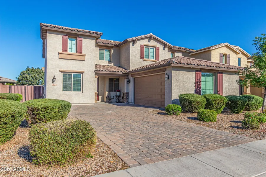 Welcome to 162 W Evergreen Pear Ave! This stunning two level home, nestled in the highly sought-after community of Ironwood Crossing, offers the perfect blend of modern comfort and desirable Arizona living. Built in 2018, this well-maintained property features 5 bedrooms and 4 full bathrooms! The interior boasts an open-concept great room, perfect for entertaining, with upgraded flooring and light fixtures. The kitchen is a chef's delight, complete with granite countertops, stainless steel appliances, a large island, a gas range and ample cabinet space. The spacious primary suite provides a private retreat, featuring a dual vanity, long shower with drying area and walk-in closet. Step outside to the backyard, patio, or balcony, all ideal for enjoying the beautiful Arizona weather.