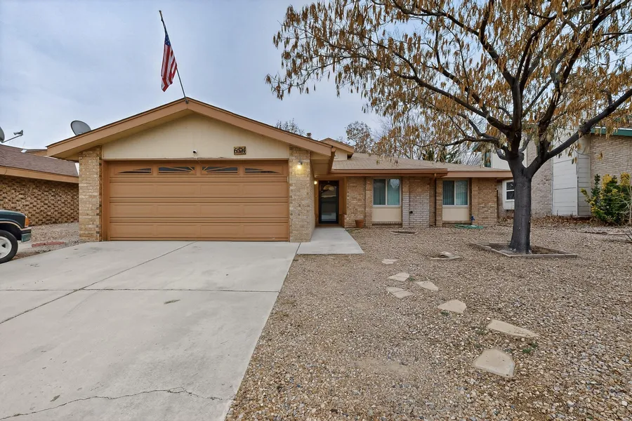 Well-maintained 3-bedroom, 2-bath home in the desirable Taylor Ranch area of NW Albuquerque, built by Sivage Homes. Vaulted ceilings create an open feel, complemented by new laminate flooring throughout the main living areas and new carpet in the bedrooms. The recently remodeled bathrooms add a modern touch, while the living room features a brick-faced, brick wood-burning fireplace. Refrigerated cooling ensures year-round comfort. The 465 sq ft garage includes built-in shelving for convenient storage. Step outside to a private, low-maintenance backyard, enclosed by block fencing, with mature trees providing shade, turf and pavers, and an open covered patio ideal for relaxing or entertaining. Located near Mariposa Park, walking trails, and a variety of shopping and dining