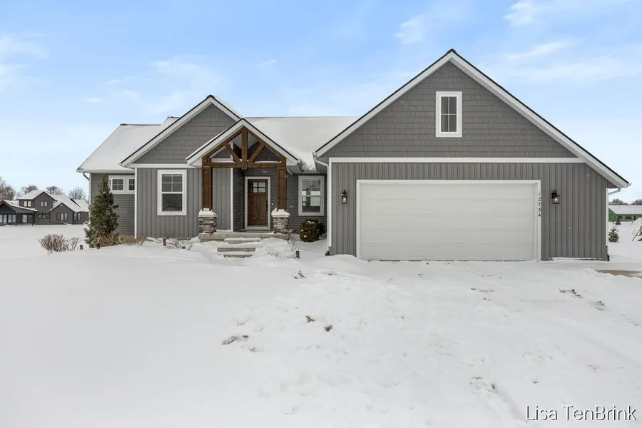 Nearly new custom-built home in highly desirable Allendale! This exceptional 6-bedroom, 3.5-bath home offers 3,380 sq ft of thoughtfully designed living space on a 1-acre professionally landscaped lot w/ UGS & fencing. Enjoy abundant natural light throughout, thanks to ample windows & an inviting layout crafted for both everyday living & entertaining. The heart of the home features a well-appointed kitchen w/ quartz counters, slow-close cabinets & drawers, center island snack bar, walk-in pantry, & mudroom access, flowing seamlessly into the adjacent dining area w/ quick access to the covered deck - perfect for indoor-outdoor living. The living room boasts a tray ceiling & a gorgeous fireplace, creating a warm focal point. Retreat to the beautiful primary suite w/ tray ceiling, dual sinks, quartz counters, WIC, dual shower head walk-in tiled shower, and luxurious jetted tub with tile surround. All bedrooms are generously sized w/ large closets, & the lower level expands your living space w/ a spacious family room, 4 additional BR's, and 2 full baths-ideal for guests or a growing household. Outdoor lifestyle perks include Grand River access through the association, & the HOA fee covers subdivision entrance maintenance & snow plowing of the roads. Buyer or buyer agent to verify TFLA.