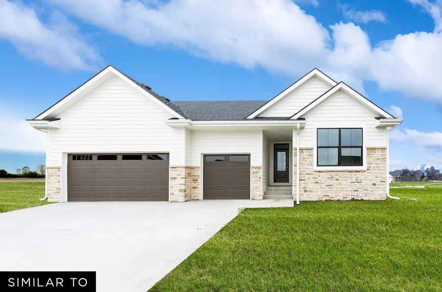 Welcome to the Allendale plan from Jerry's Homes! This 3 bed 2 bath ranch has over 1,800 sq ft finished with 9' ceilings on the main and 11' in the great room! The living room has plenty of natural light from the large windows and features a gas fireplace with floor-to-ceiling stone surround, built-in shelving and cabinetry. The kitchen features Aristokraft cabinets, GE gas range and appliances, quartz countertops, lvp flooring, a corner pantry, tile backsplash and an island with plenty of room for seating. Design choices such as modern black hardware and fixtures is on trend throughout the home. Large primary bedroom with tons of windows, private bath with double vanity and tiled shower, and a large walk-in closet conveniently located adjacent to the laundry. Two more bedrooms on the other side of the home finish off the main floor. Exterior has low maintenance LP siding. You'll love evenings out on the covered deck that comes standard on this plan. Drop zone and 3car garage offer plenty of storage. The lower level can be finished as you wish and is also stubbed for a future bath. North Polk schools or open enroll in Ankeny.. Located near the new Costco and just west of I-35.