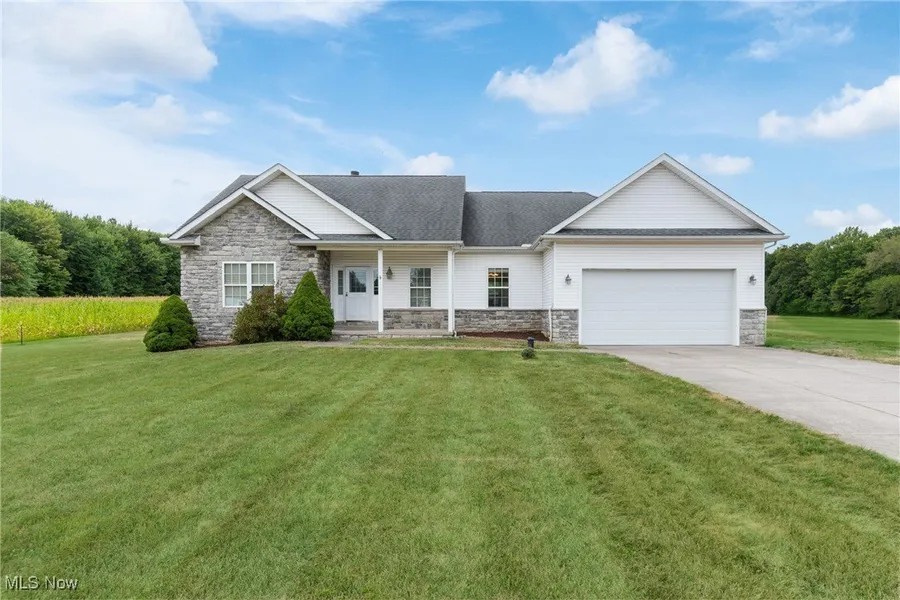 Welcome to 2265 Industry Road, Atwater-an impressive, sprawling ranch set on over 3.5 picturesque acres, designed to offer both comfort and functionality. This home includes privacy, a quiet lifestyle, close proximity to Kent, recreation at Nelson Ledges, boating/fishing at West Branch State Park, and within 10 minutes of Giant Eagle and 6 minutes of local restaurants. From the moment you arrive, the stone-accented exterior and inviting curb appeal set the tone. This property includes a 2-car attached garage, an expansive 4-car detached garage ideal for additional vehicles, storage, or workshop needs, and a custom-built pole barn built with a multitude invested for equestrian use. The barn features 2 horse stalls, electric, water, a tack room, and a sawdust room, making it an exceptional setup for horse enthusiasts or hobby farming. Step inside through the welcoming foyer and into the bright, airy living room. The heart of the home is the spacious kitchen, complete with recessed lighting, breakfast bar seating, tile backsplash, full appliance package, and an abundance of counter and cabinet space. The kitchen flows seamlessly into the large family room, highlighted by a stunning stone-front wood-burning fireplace and access to the covered rear porch overlooking the acreage-perfect for relaxing or entertaining. The private primary suite is a true retreat, featuring a tray ceiling, oversized walk-in closet, and a luxurious bathroom with dual sinks, a fully tiled walk-in shower, a separate shower, and ample space. The opposite wing offers two generously sized bedrooms w/easy access to a full bathroom. The full basement is ready to be finished, offering endless possibilities for recreation or additional living space. Bright, neutral, and move-in ready, this property combines peaceful country living w/modern amenities. With multiple garages, a custom horse barn, an opportunity for one-floor living and endless space to grow, this home is ready for its next owner!