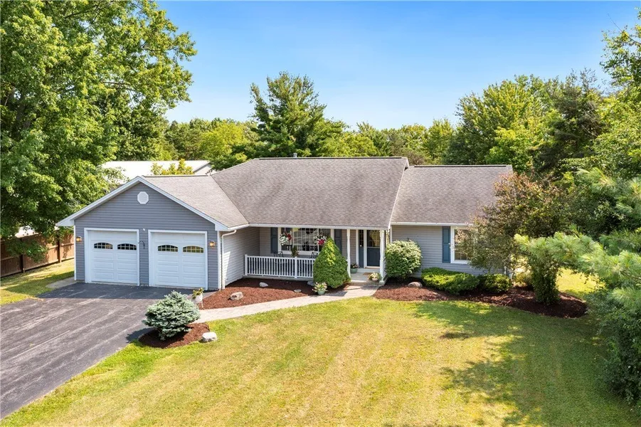 Best and Final offers are due Monday, October 27th, at 5pm. This 1,824 square foot ranch, built in 2004, sits on 1.1 acres and offers comfortable, single-level living in a desirable location just steps from Owasco Lake and the Owasco Lake Yacht Club. Inside, you'll find an open floor plan with hardwood floors in the living room, kitchen, and dining area. A charming fireplace anchors the living room--perfect for cooler evenings. The kitchen includes granite countertops, an island with seating, and all appliances are included. Sliding glass doors off the dining area lead to a large deck and spacious back yard-perfect for relaxing or entertaining. The layout offers privacy with the primary bedroom suite, including a full bath, on one side of the home, and two additional bedrooms with a second full bath on the other. There's also a first-floor laundry room with a convenient half bath. Other highlights include central air, public water and sewer, and a spacious attached two-car garage. This home offers the perfect balance of comfort, space, function and location! For more info on Owasco Yacht Club and membership fees, go