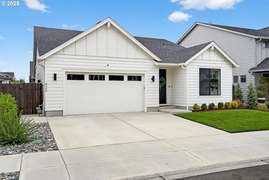 This house is pure perfection! Don't miss it! The pictures are great but it's even better in person! Custom built by award-winning Generations NW, it's a one level beauty loaded with upgrades. All you have to do is unpack and enjoy! The heart of the home is the great room, and this one delivers: the kitchen has a huge island with eating bar, quartz counters, stainless steel appliances, pantry big enough to stock up, plus pendant and under-cabinet lighting. The living room is modern, with a custom plaster fireplace, built-in cabinets, and floating shelves that look straight out of a designer magazine. Wide-plank floors flow, tying it all together with style. The primary suite is set apart from the other bedrooms for privacy, and comes with a motorized blackout shade for ultimate comfort and convenience. Step outside to your oversized covered patio and private backyard oasis, designed for ...