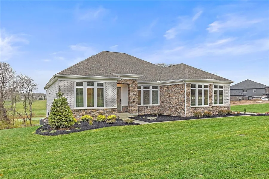 Gorgeous new Winslow plan in beautiful Bent Creek Woods featuring one floor living at its finest with an island kitchen with built-in stainless steel appliances, upgraded cabinetry with soft-close hinges, durable quartz counters, large pantry, breakfast room, and all open to the spacious family room with gas fireplace. Gleaming hardwood floors throughout the main floor living areas. Formal dining room and private study with double doors just off the foyer. Tucked away primary suite with an en suite featuring double bowl vanity, freestanding tub, separate shower, private commode, and walk-in closet. There are 2 additional bedrooms each with a walk-in closet and full bathroom on the opposite side of this home. Full basement with full bath rough-in and a 3 bay side and front load garage.