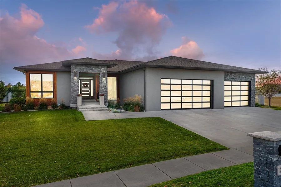Experience modern luxury and comfort in this stunning ranch-style home. The bright, open living room features an accent tray ceiling and cozy gas fireplace. The gourmet kitchen offers custom cabinetry, quartz countertops, a large island, and flows seamlessly to the dining area and covered patio with an outdoor kitchen-ideal for relaxing or entertaining. The primary suite includes a soaking tub, dual vanities, and spacious walk-in closet. Two additional bedrooms, a full bath, powder room, and large laundry/mudroom complete the main level. The lower level features a generous family room, two bedrooms with walk-in closets, a full bath, and unfinished space perfect for a future suite or media room. An oversized heated 3-car (1,300 sf) garage provides ample storage and workspace. Conveniently located near schools, trails, shopping, and dining. Priced below appraised value for instant equity.