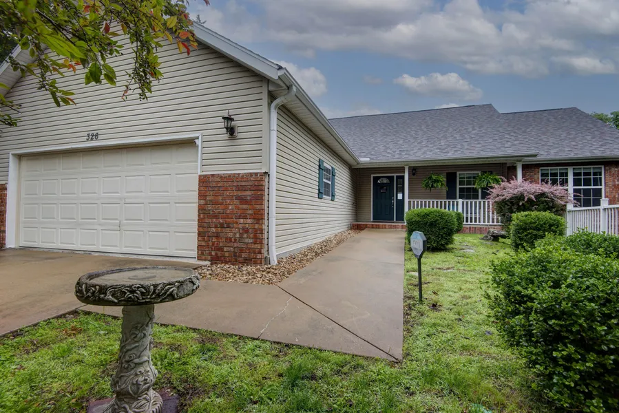 Welcome to Country Bluff Estates, Branson's premier in-town, executive community and the very definition of 'City Close and Country Quiet!'Situated on a beautifully wooded 1/2 acre lot, this home looks directly across at the charming campus of College of the Ozarks and the historical Lyons Memorial Library. If you go out on the deck on the hour you can hear the bells of the CofO chapel playing, 'Westminster Chimes.' It's truly lovely. The land behind the house is also owned by the college so you can enjoy the peaceful bucolic pleasure of cows dotting the hillside. This quality home is located on a quiet mini-culdesac on a lovely wooded lot with a flat driveway, flat entrance, and flat front yard. Beside the house is a wonderful woodsy area with a fire pit and easy access from the downstairs deck. The other side of the house is just woods too so it feels really private. Everything you nee...