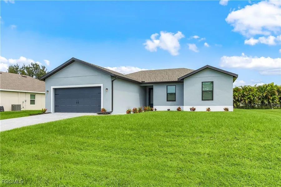 ***$25,000 PURCHASE INCENTIVES INCLUDING CLOSINGS COSTS! ***Move-in Ready! Style meets functionality in this Cedar Key floor plan in south Cape Coral. Open concept floor plan with three bedrooms, two full bathrooms and an extra flex room fill this new-construction home. Included upgrades such as stainless-steel Whirlpool(R) kitchen appliances, quartz countertops, 42" upper cabinets with crown molding and smart-home technology make this retreat move-in ready. Other features include soaring 11'4" ceilings in main area, impact resistant windows and doors, a programmable thermostat, a Wi-Fi-enabled garage door opener and an outlet with USB charging capability. The kitchen, family room and adjacent covered patio provide the ideal backdrop for entertaining. With sizeable bedrooms and a master retreat featuring a walk-in closet, the Cedar Key floor plan is a beautiful home for families. The exc...