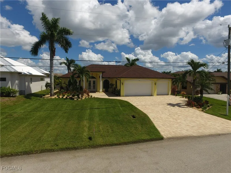 This partially furnished, Gulf access, waterfront, pool home is move-in ready! When entering through the double door entryway, you have a wonderful view of the spacious great room with cathedral ceilings, screened in custom in-ground swimming pool and overlooking the Clifton Canal waterway. Recent upgrades include a new HVAC unit in 2020 (International Comfort Products ICP), and appliances in 2022, new roof, solar panels and screen enclosure in 2023. The home offers a grand breakfast bar, breakfast nook, custom cabinets, solid surface counter tops, backsplash, stainless appliances (Kitchen Aide), new 50-gallon electric water heater in 2024, new carpet in the bedrooms, extra storage, new outdoor kitchen ($20,000), 4'9" x 10' shed, pool blanket, exterior mounted 50 amp generator plug, and a 3-car garage. Updated electrical light switches and receptacles, insulated walls between living room and master bedroom as well as laundry room and kitchen. There are 8' pocket sliding glass doors and impact windows throughout. Conveniently located and in close proximity to Joe Coviello Park, Sands Park, Camelot Park, Cape Harbour, Tarpon Point, shopping plaza's, restaurants, schools, bike lanes and banking. Showings are by appointment only. Please Note, the following does not convey: 4 kitchen bar stools, sewing machine, little lamp in back bedroom, rocker, liquor cabinet, slot gaming machine, frames with war metals, antique folding leaf table, 2 filing cabinets, framed parrots picture, 4 black frames with sunset, shells, birds, fish, hanging cutting boards, jewelry cabinet, shower seat, printer, shredder, garage refrigerator, live your dreams hot plate, 4 tv's, iron and board.