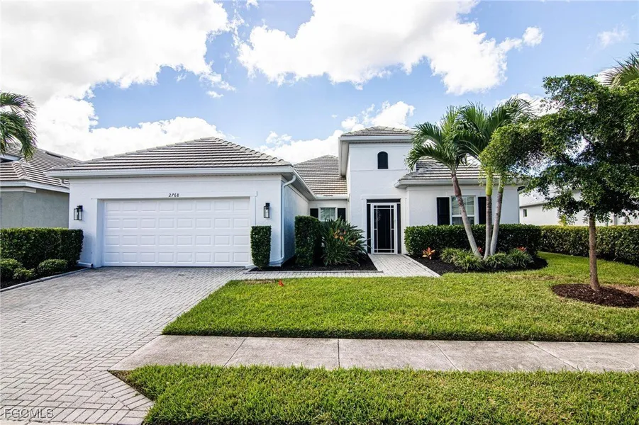 GORGEOUS 3-bedroom + den, 2.5-bath home featuring stunning mature landscaping and bright southern exposure! This residence boasts volume ceilings with crown molding throughout and an open, split floor plan that creates a spacious, inviting atmosphere. Custom fireplace and beautiful woodwork sets this home apart from any other. The huge chef's kitchen is a showstopper with custom cabinets, granite counters, a pantry, breakfast bar, beverage fridge, stainless steel appliances, and a large island-perfect for entertaining or everyday living. The owner's suite offers a private retreat with a walk-in closet, dual sink vanity, and an expansive walk-in shower. Beautiful wood floors run throughout the main living spaces, with carpet in the bedrooms for comfort. A formal dining room and eat-in kitchen provide multiple dining options. Step outside to your private salt water pool with a fully fenced deck area and an under-truss lanai with roll-down hurricane screens, ideal for relaxing or entertaining year-round. Garage comes equipped with a Tesla charging station. Come enjoy the Florida lifestyle at one of Cape Coral's most desired GATED communities. Sandoval is known for its relaxed lifestyle living with plenty of activities for all ages! RESORT STYLE POOL, FISHING PIER, 2 DOG PARKS, KIDS PLAYGROUND, BOCCEBALL, VOLLEYBALL, BASKETBALL AND TENNIS COURTS just to name a few. Call today to schedule your private tour!