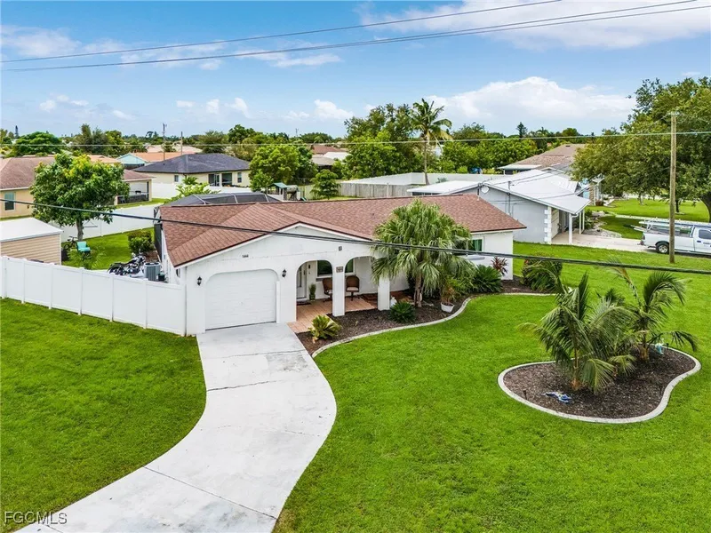 This tropical oasis Pool home has all the right Amenities, Features & LOCATION!! Perfect starter home or Rental, Roof 2023, Newer Vinyl windows, updated A/C & hot water heater, as soon as you enter this property it offers a wide-open floor plan, tiled floors in the main area of the house, the galley styled kitchen offers new granite counter tops & updated stainless steel ice maker refrigerator, newer vinyl flooring in the bedrooms & baths, great view from the living room dining area with New Impact sliders that lead out to your tropical screened pool & above ground heated spa lanai to start living the Florida life style, the main bedroom is large & offers new vinyl flooring with a walk in closet, main bath has a newer granite vanity top, wall mirror & tub & shower, the second bedroom has new vinyl flooring with a closet, inside laundry area, back yard is very private & the new 6ft vinyl fence was installed in 2021 with permits, there is a large additional concrete patio area outside the pool cage for all your entertaining needs, New large storage shed with power, auto sprinkler system, City Water & Sewer Assessments are all paid, 1 car garage, plenty of parking, close to all shopping, Restaurants, airport, I-75 & 25 minutes to Fort Myers Beach & the Gulf of America, make sure you put this home on your list to see!!
