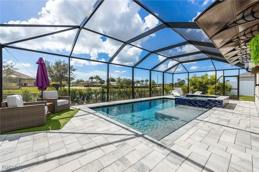 PRICED TO SELL! Stunning 4-Bedroom Pool Home with 3-Car Garage in Sought-After SW Cape Coral! Discover the perfect blend of style, comfort, and location in this beautifully designed home situated on a peaceful freshwater canal near the Midpoint Bridge. The open-concept floor plan is ideal for both everyday living and entertaining, featuring upscale finishes throughout. The chef-inspired kitchen shines with custom black cabinetry, sleek quartz countertops, a designer tile backsplash, and premium appliances. The spacious primary suite offers a spa-like retreat with a luxury walk-in shower and dual vanities. Step outside and embrace the Florida lifestyle with a custom heated pool and spa, a screened lanai, and an expansive patio surrounded by lush landscaping-perfect for relaxing or hosting guests. Additional highlights include a whole-home water system, washer and dryer, modern lighting, and ample storage with a 3-car garage. Ideally located just minutes from Publix, Sam's Club, Target, Home Depot, and a variety of popular dining options, this home delivers both convenience and tranquility. A must-see property that truly has it all!