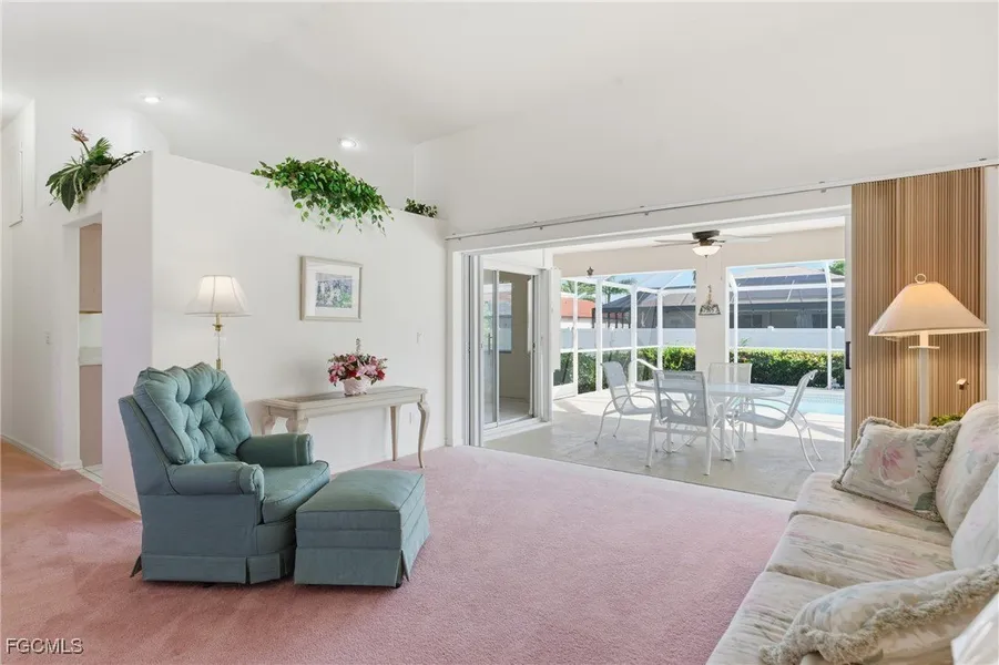 Tucked into one of **SW Cape Coral's most desirable pockets**, this well-maintained 3-bedroom, 2-bath home offers 1,945 square feet of easy, sun-filled living in a quiet neighborhood laced with canals. Vaulted ceilings and crisp white interiors create a light, airy feel, while the spacious family room flows effortlessly from the kitchen-complete with bar-stool seating and a cozy dinette that invites slow mornings and casual gatherings. Natural light pours in, giving the entire home a fresh, welcoming calm. Outdoors, the lifestyle truly unfolds. Pocket sliders open wide to a large lanai designed for entertaining, where a low-maintenance fiberglass pool and new pool cage make afternoons linger and evenings effortless. Lush, manicured landscaping frames the home beautifully, adding to its curb appeal and sense of care. Ideally located near Cape Harbour Marina, shopping, dining, and just minutes to Camelot Park, this home blends comfort, convenience, and peace of mind-including no flooding from storms -into one inviting SW Florida retreat. Schedule your showing today!