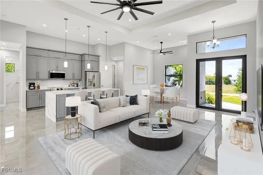 Discover Your Slice of Paradise in Cape Coral! Step into this breathtaking 3-bedroom, 2-bathroom home where modern elegance meets Florida charm. Nestled in the heart of sunny Cape Coral, this beautifully designed oasis offers a seamless blend of luxury and comfort. From the soaring high ceilings to the sun-drenched, open-concept living spaces, every inch of this home has been thoughtfully crafted to impress. Furniture in select photos has been digitally added to showcase possible layouts. Retreat to the expansive master suite-your personal sanctuary-complete with a spa-inspired en-suite bathroom featuring a ceiling-mounted rain shower for the ultimate daily indulgence. Entertain effortlessly in the stylish outdoor lanai with kitchen, perfect for weekend gatherings or quiet evenings under the stars. Ideally located near the best of Southwest Florida, you'll enjoy easy access to world-class beaches, boating adventures, vibrant dining, and boutique shopping-all just minutes from your doorstep. Don't miss your chance to experience the ultimate in coastal living. Schedule your private tour today and make this dream home your reality!
