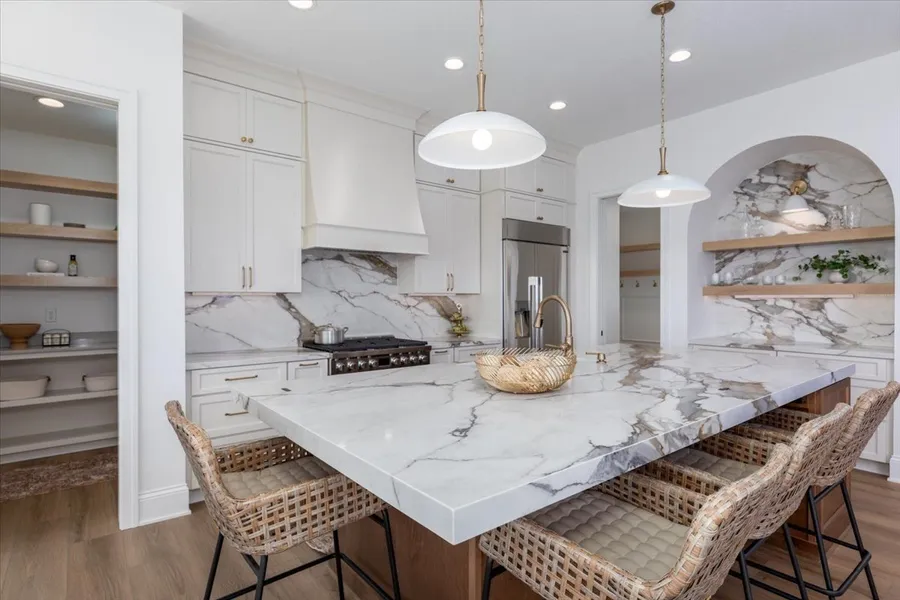 The Grace plan by Grace Allen Homes in Shadow Creek West, offers nearly 2,100 sq ft of beautifully designed living space on a fully irrigated 1/2 acre lot with tree lined views. This 4 bed, 5 bath home features a spacious primary suite with a luxurious wet room with vaulted ceiling, zero entry shower, soaking tub, illuminated shelving, and heated tile floors for spa like comfort. One bedroom has a private ensuite, while the LL includes a Jack and Jill bath. The gourmet kitchen includes quartz countertops, a gas range, and a premium refrigerator. Find a hidden spiral staircase leading to a speakeasy with tile, brick-like floors and moody lighting! FreePower wireless charging units, epoxy floors, dual zone HVAC and a second washer/dryer hookup downstairs for convenience. Plus, a covered 22" wide composite screened in deck with privacy, and a curved patio for grilling. Home includes 2-10 builder warranty.